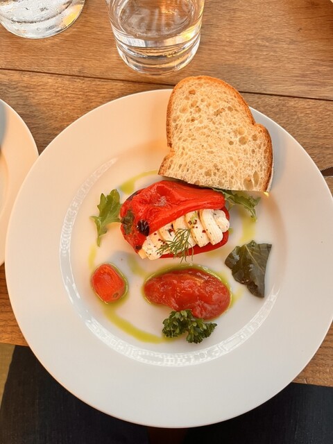 チキン・パプリカーシュ、冷製のコテージチーズ詰めピーマン、どれも初めての“ハンガリー初体験”。