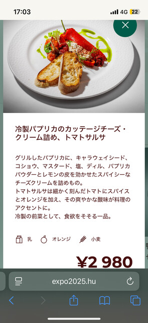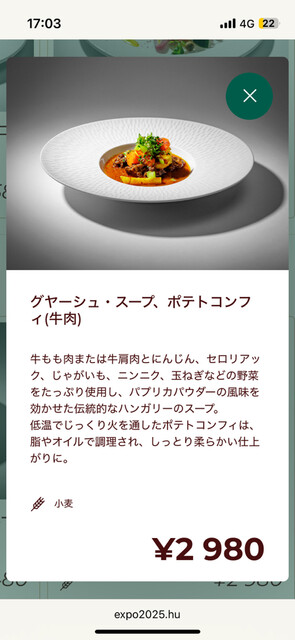 ハンガリー・パビリオンは、草原を思わせるテキスタイルが風に揺れ、木質や自然素材を多用した建築が「自然と未来」を語りかける構造だった。その一角に、Miska Kitchen & Barはビストロ形式で伝統的なハンガリー料理を提供。