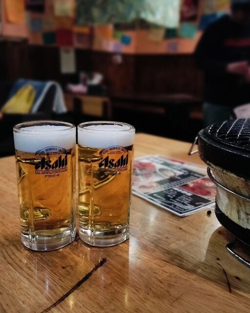 炭でじりじり焼肉しながら飲むビールは最高さね。
