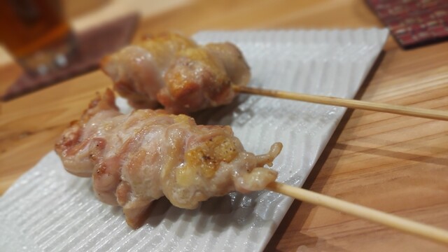 此方で必ず頼む一品。大降りに巻いて串に刺してある。じわりと炭火を潜らせ絶妙な火入れ。迸る肉汁と堪らない弾力。「やっぱしこれだね」