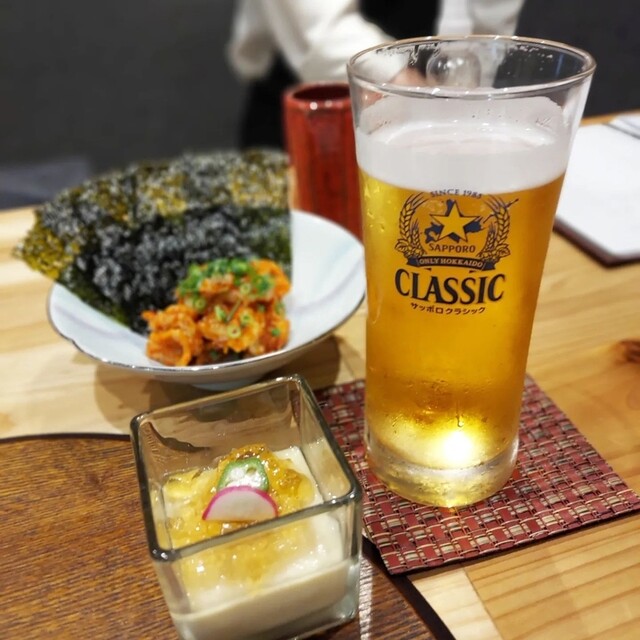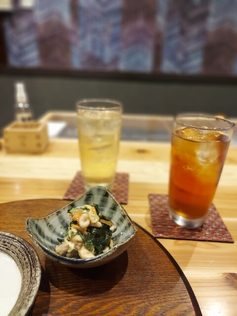 お通しの湯葉のとろろ昆布餡的なやつが、うまーい!