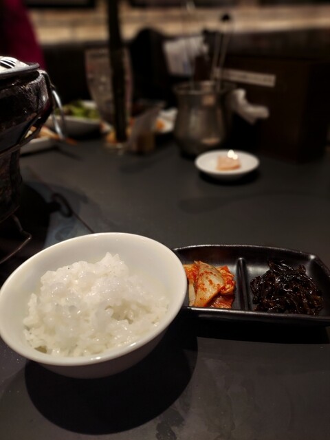 前足からミスジ、肩ロースからザブトン、リブロースからミカヅキ、後ろ足からトモサンカクの4種の希少部位盛り合わせとオーるスターの登場だ。焼肉来たらこれだよな。こいつはご飯が欲しくなってきたぜ!なんて思っていたらもう少しで炊きたてご飯が間もなく届くと!