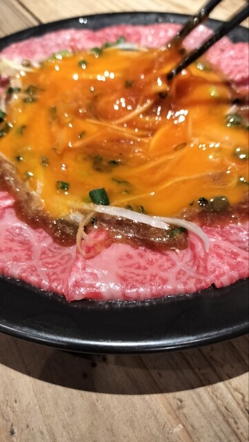 和牛カルパッチョの玉子との絡みが堪らなくうまい。牛タンの旨いこと。美味しいご飯も土鍋で炊きあげていただきうんめぇ肉と噛み締める幸せ。