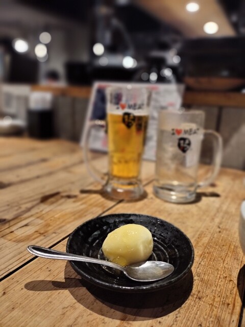 先付け的に山芋キムチ。歯ごたえよく、しかしねっとりと。そこにピリッとキムチん。うめ。ビールください!
