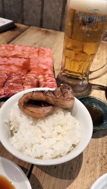 さらに三種の牛タンも軽快に焼いていただきハフハフ食べる。厚切り牛タンは中から溢れる肉汁と歯応えが堪らん。昆布〆たんはしっとり、抜けた水の分旨味を纏っていて美味。芽ネギたんはしゃきしゃきのネギが良い感じ、寿司屋のメニューか?ってくらい繊細なこれ。語尾にたんシリーズ。名前呼ぶだけでカワイイたん。