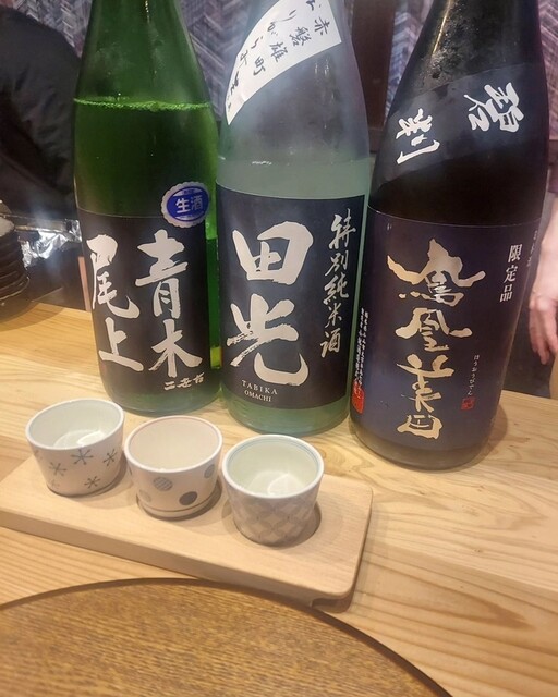 ソガペールエフィスのエロティック他数種飲む。白ワインのような飲み口優しいうまい日本酒。ボトルで水くれるのも嬉しい。