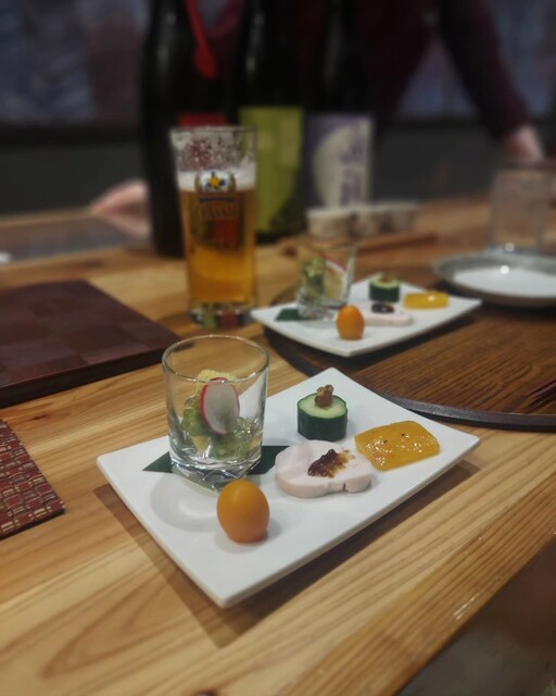 美しきお通しの前菜盛りも美味しいし見てるだけでテンション上がるね。