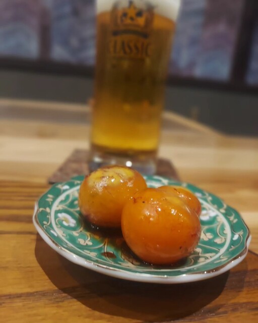 今日のNo.1は【鶏のなめろうにキンカン】の乗った逸品!潰して黄身を混ぜ込み海苔で巻く。トロリとした口当たりと広がる旨味。