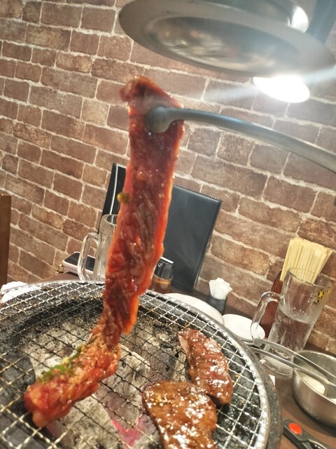 さぁ、本日のラス肉。上品な脂がうまい上カルビ。噛むほどにうまみ広がるカイノミ。なが~い中落ちカルビはハサミでチョキチョキ。噛み応えあり肉の旨味が強い。とても良い。