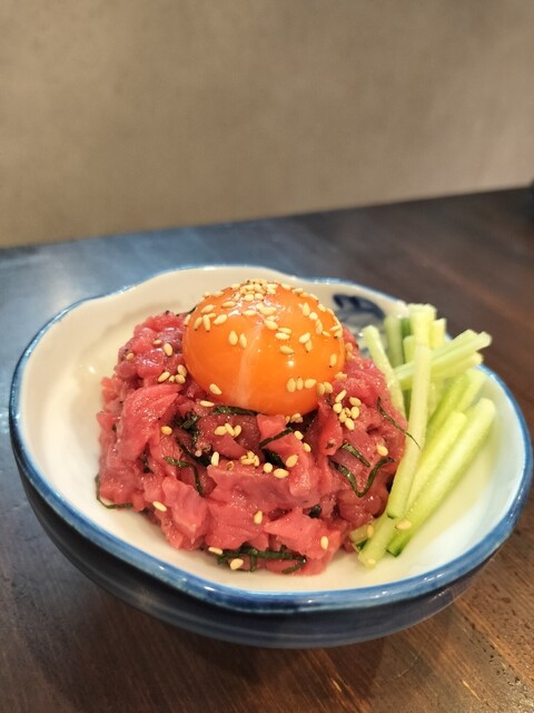 肉々しいユッケスタイル。たしかにね。ウズラでいいから玉子欲しくなるね。