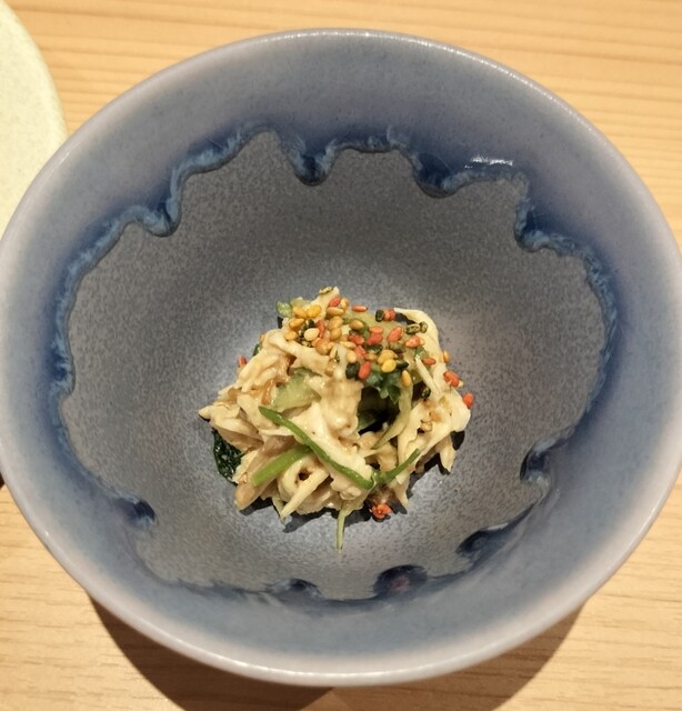 好きなタイミング、料理と共に使ってくれとのことで、寿司屋のガリ的なSomething♪これが良いのよ。山椒や黒七味など薬味も魅力大爆発だ。