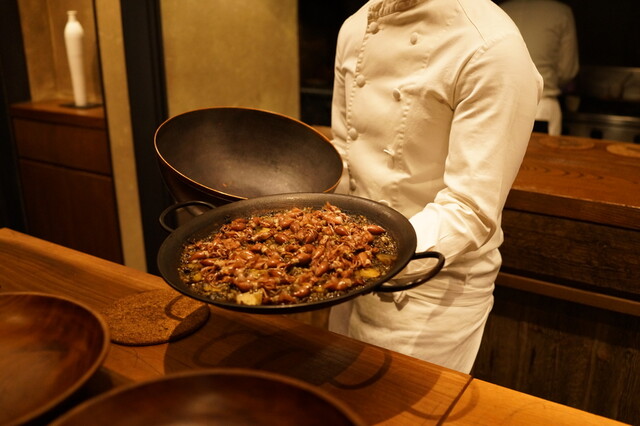シェフは全料理を自ら作ってました。最後のパエリア以降は接客専門に。