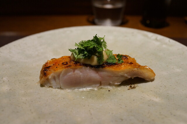 「金目鯛」は旨味強めのレア気味な金目鯛が超うまい。やや酸味のあるソース。