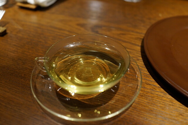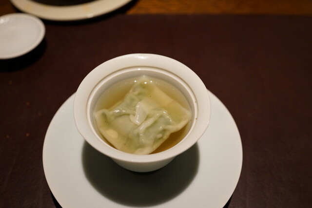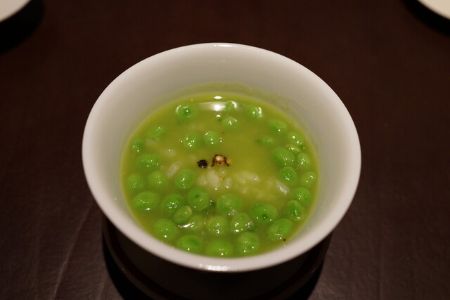 「ハムスープ」は旨味強めの澄んだスープ。Theそら豆味の具入りパスタが面白い。