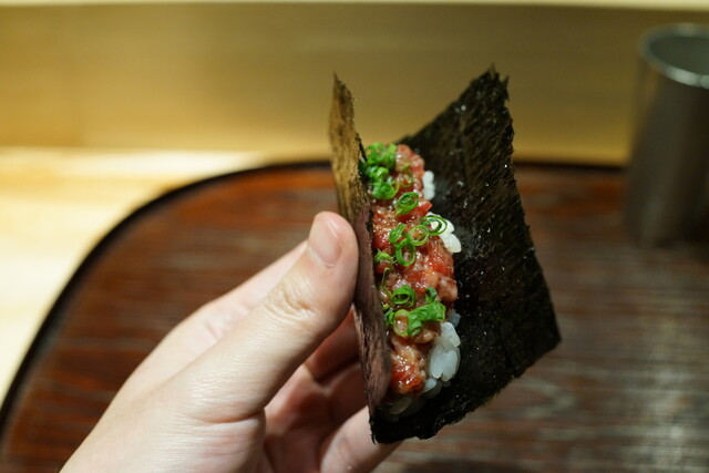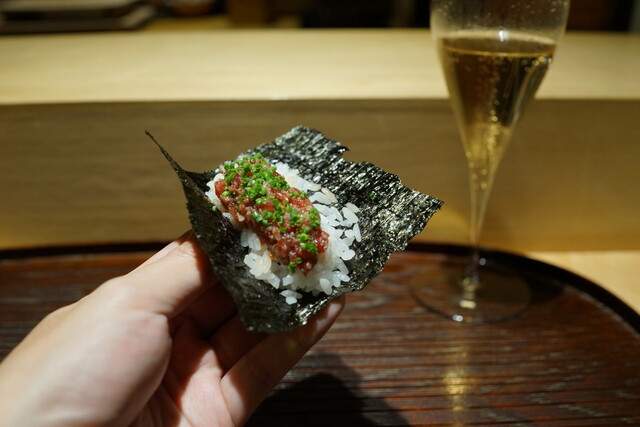 「1番出汁系椀。強い旨味」「カイノミ手巻き」「トマト」