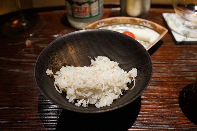カニを中心とした極めて強い旨味がついており最高。2杯目は卵黄&カツオ節で味変。