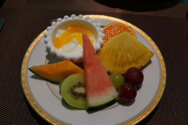 夕食の部屋バーベキュー素材は非常に高品質でした。レストランでコースもあります。