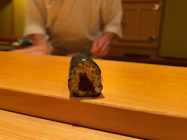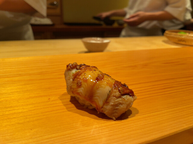 大半の予約困難寿司屋と同様、シャリは塩味や酸味が強くインパクトある味わい。