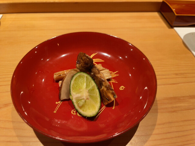 新いくら、毛蟹ジュレ、タコ&アワビ、真鯛&アラ、牡丹海老&赤雲丹、松茸、関西風天然海うなぎ、あん肝&奈良漬け。