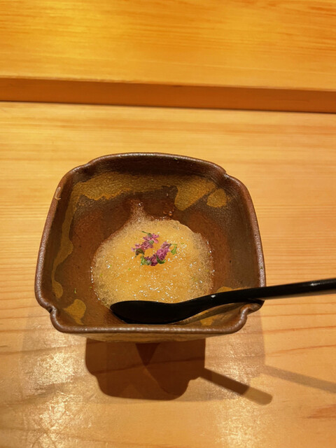 「海老頭とアカムツ頭で出汁をとった味噌汁」がとても美味しかった。海老の風味満点で旨味しっかり。