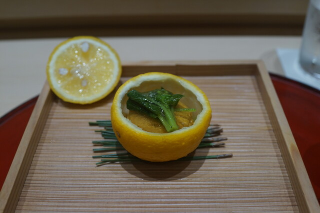 「雲丹。柚子・葉ワサビ」 ムラサキウニの「はだての生うに」を使用