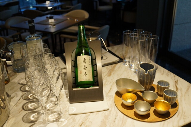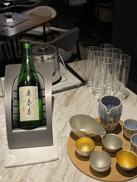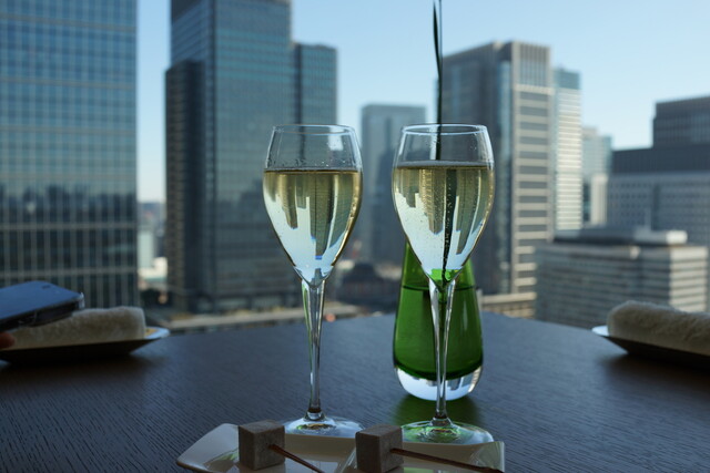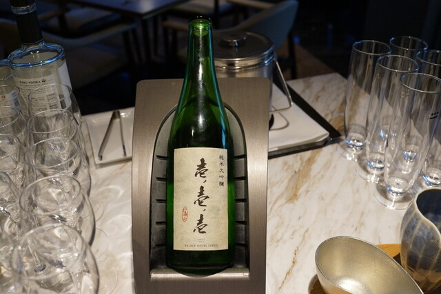 日本酒はパレスホテル東京のオリジナルブランド。八海山の純米大吟醸。