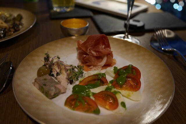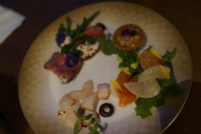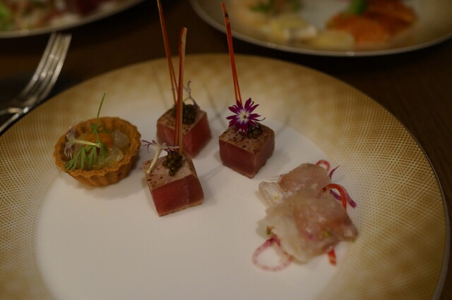 マグロキャビア、イカ刺身with雲丹、スモークサーモン&いくら、ローストビーフ、海老帆立マリネetc