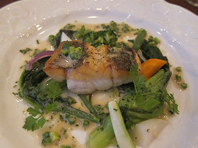 鱸のポワレ。お野菜も美味しいです。
