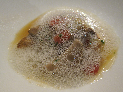 泡?そう。泡です。ジャガイモの泡の中から鯛が出てきます。