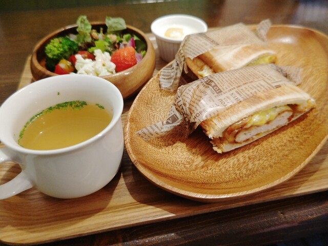 連れが頼んだホットサンドセット(通常Ver)も美味しそう。少しばかり拝借しそうになるも、我慢です!