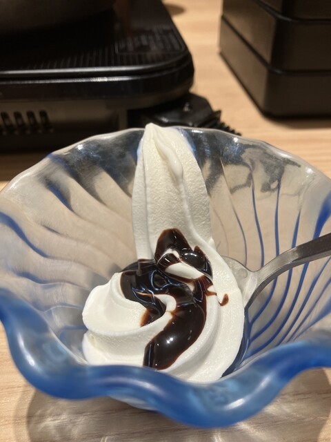 食後にはソフトクリームにチョコソースをかけて