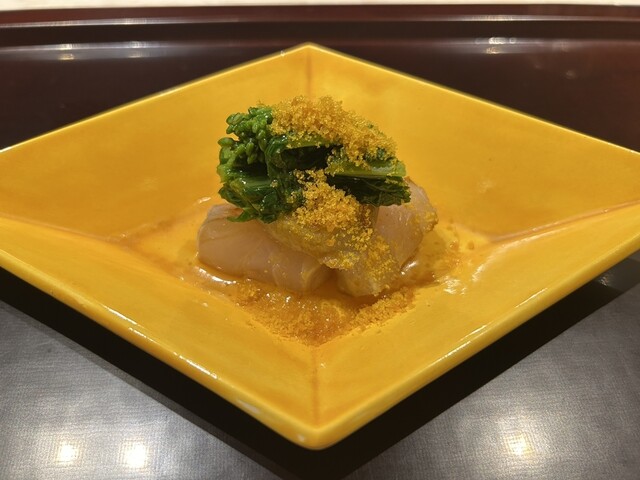 すじあら、からすみ、菜の花は1つずついただいても美味しいのだけれど、3種を一緒にいただくとより絶品!