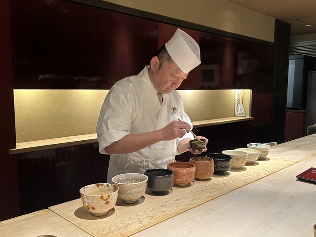 和食コース。カウンター席にて大将のライブ感を目の前に、感動しながらお料理が進んでいきます。