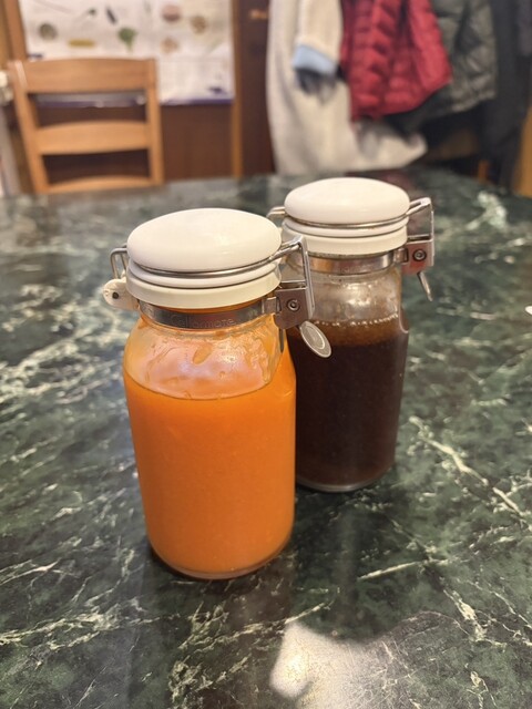 定番のドレッシングと、この日は人参ドレッシング。どちらも素材の甘みが生きていて好みでした。
