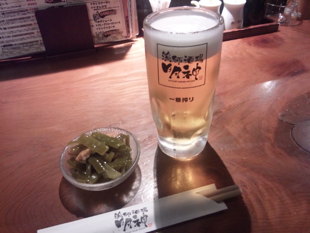さきほどラーメンと餃子を食べたため生ビールと塩たたきだけにしました。