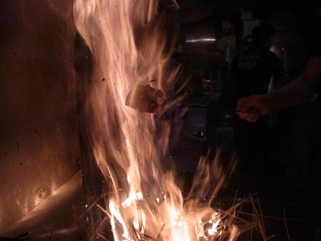 一瞬で勢いよく燃える藁で焼くから表面がサクサクとして美味しくなります。