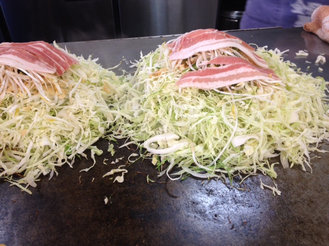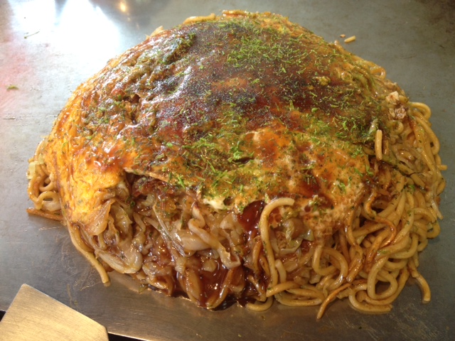 熱々の鉄板でピリ辛ソースのお好み焼きを食べると体の中からやる気満々になって元気になるような気がします。