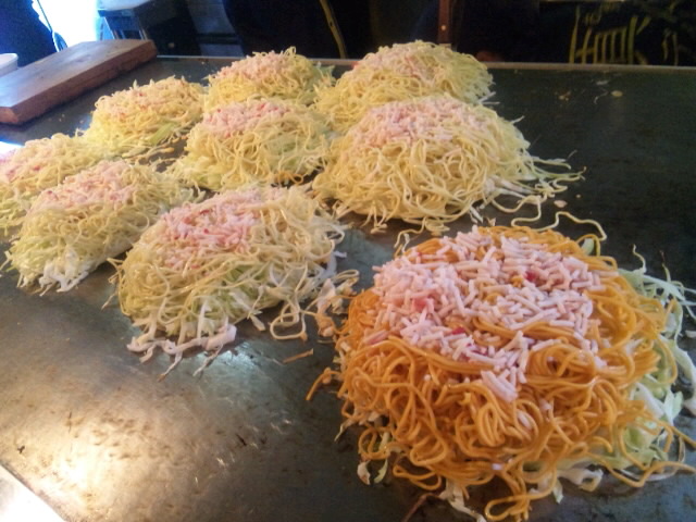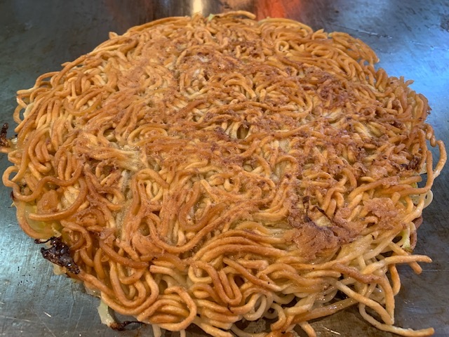 府中焼きは通常のお好み焼きと違って豚のひき肉を使われるので、その脂で麺がパリパリになります。