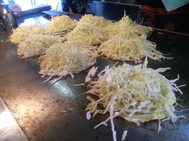 お店の鉄板で食べるのが一番美味しいと思われる府中焼きのホルモントッピングにしました。