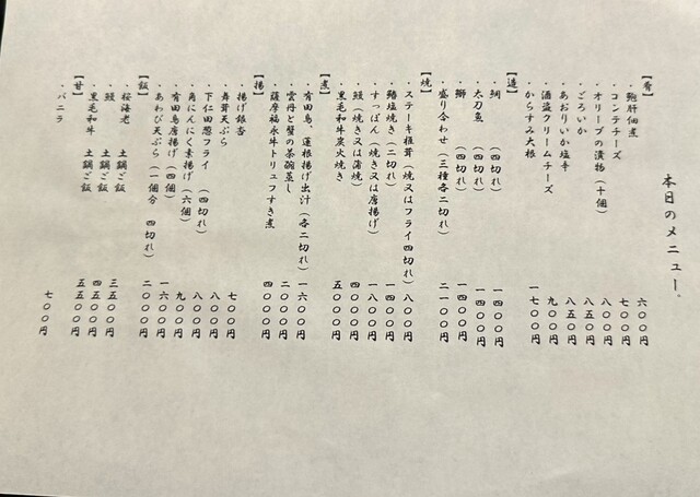 本日のメニュー
