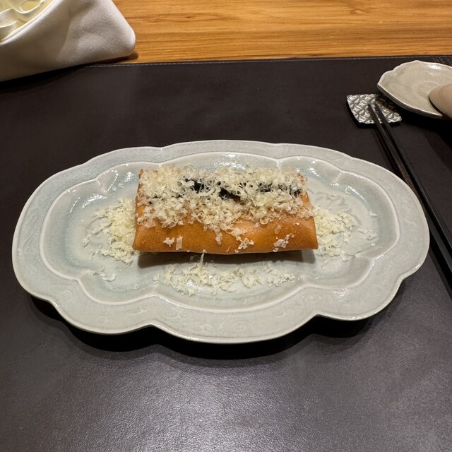 上にのったチーズのアクセントとキャビアの塩気と中のフカヒレ餡とのアンサンブルが見事でした。