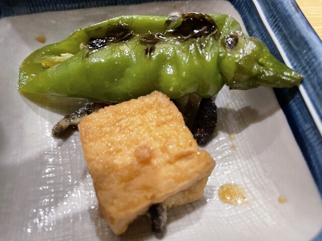 テーブルのお刺身醤油はとろみと甘みが感じられる特別仕様。勘でオーダーしたブリはらみに付けていただくとすてきな美味しさでした。はらみの脂身とお醤油の組み合わせが秀逸で、刺身を食べることに特化したお醤油と認識。いろいろ調べると、出雲のしょうゆメーカーの製品と推測されました。明日出雲に行くので持ち帰ろうと思いました。
