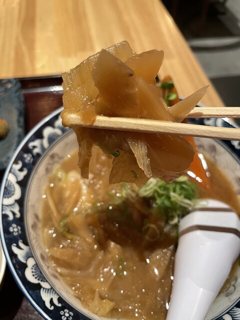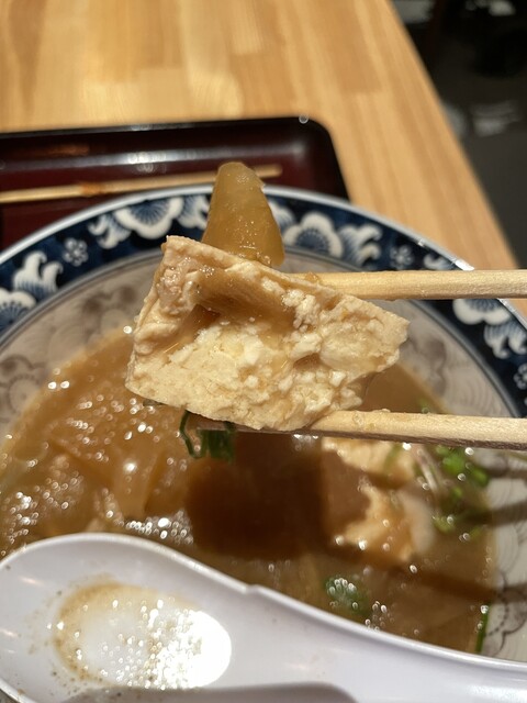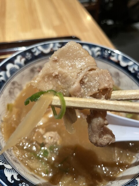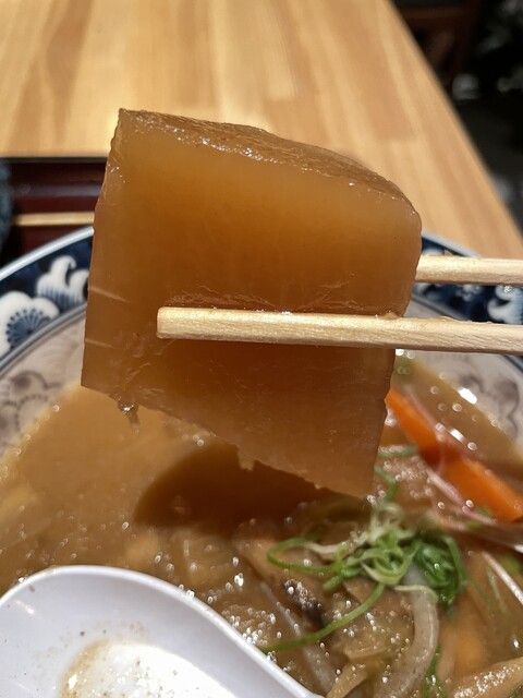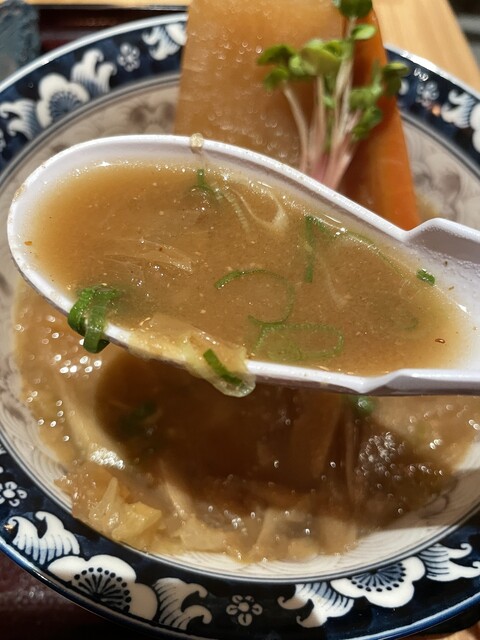 豚汁は大きな大根とニンジンが見た目に美味しそう。実際に味わうと、葉野菜の甘味がお汁に溶け込んでいて、味噌の甘味と絶妙のバランスでした。味変せずに永久に食べ続けたいと思える一品。今まで食べた豚汁の中で一番おいしかったです。他にも豚汁とのコンボメニューが多数あるので、ぜひ一度体験してみてください。