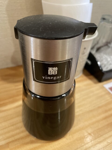 担々麺のトッピングは肉みそと彩りのよい水菜・パプリカ。ラー油が回しがけられていて見た目が華やかです。麺はパツンパツンの中細麺で好みのタイプ。とろみがあるスープがよく絡んで美味しかったです。麺を食べ終わりスープを味わいます。残った肉みそとシャキシャキの刻み玉ねぎがいいアクセントでした。テーブルのビネガーで酸味を加えるとまた違った味を楽しめました。なかなか完成度が高い担々麺でした。