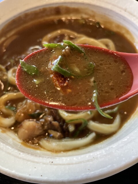 すじカレーうどんは、スパイシー感を抑えたカレー・お出汁・牛すじ肉の甘味のバランスが秀逸。甘口カレーとも違う大人のカレーうどんという印象でした。付け合わせで頼んだとり天は一瞬唐揚げかと錯覚するほどカリカリに仕上げられていました。昆布で〆て塩麴で味付けた鶏肉を使っているそうで単体で食べても美味しかったです。ここを目的地に出かけても後悔しないと思いました。