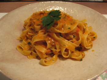 ・メインはタリアテッレ(平麺)トマトクリーム、ハーブ