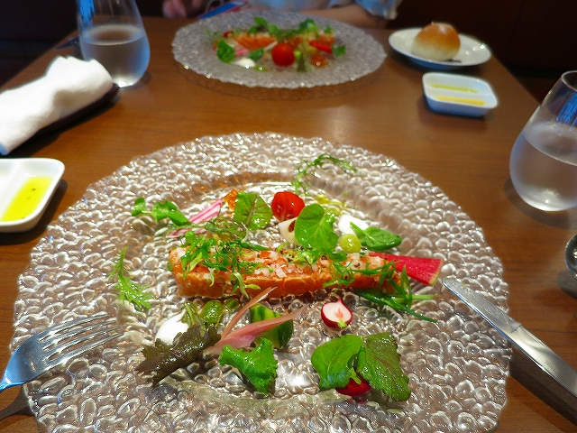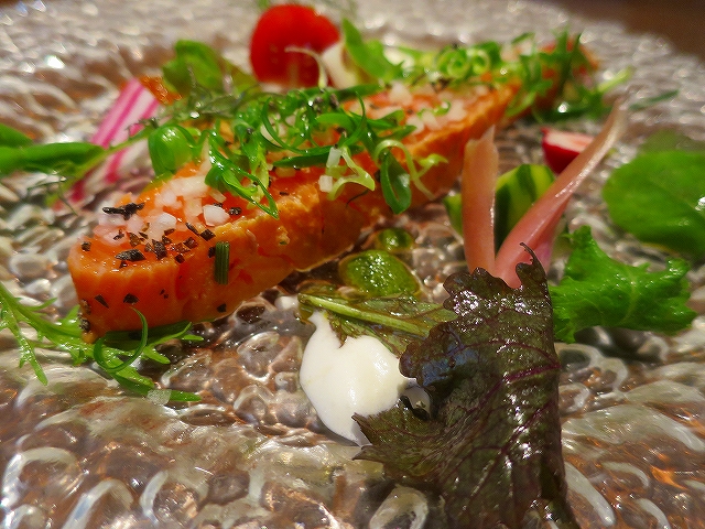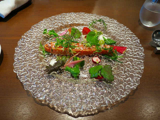 そして前菜は「サーモンの軽い燻製のマリネ」