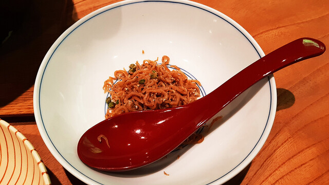 ちょっとした薬味や調味料も置かれていて、虹の塩、実山椒醤、山椒オイルをはじめとして、いろいろなバリエーションで楽しむことができる。