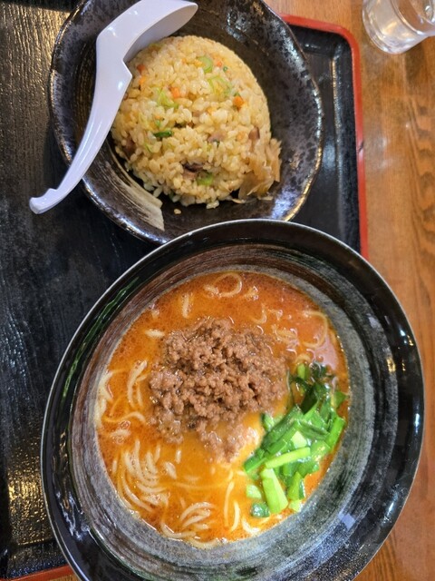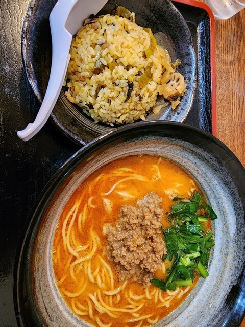 担々麺大盛(麺かため) 梅しらす半チャーハン