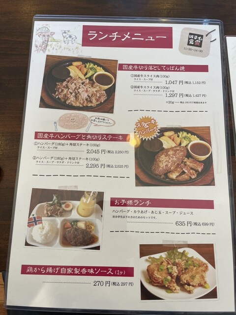 Dランチ、ハンバーグ180gコーヒ付きでオーダー